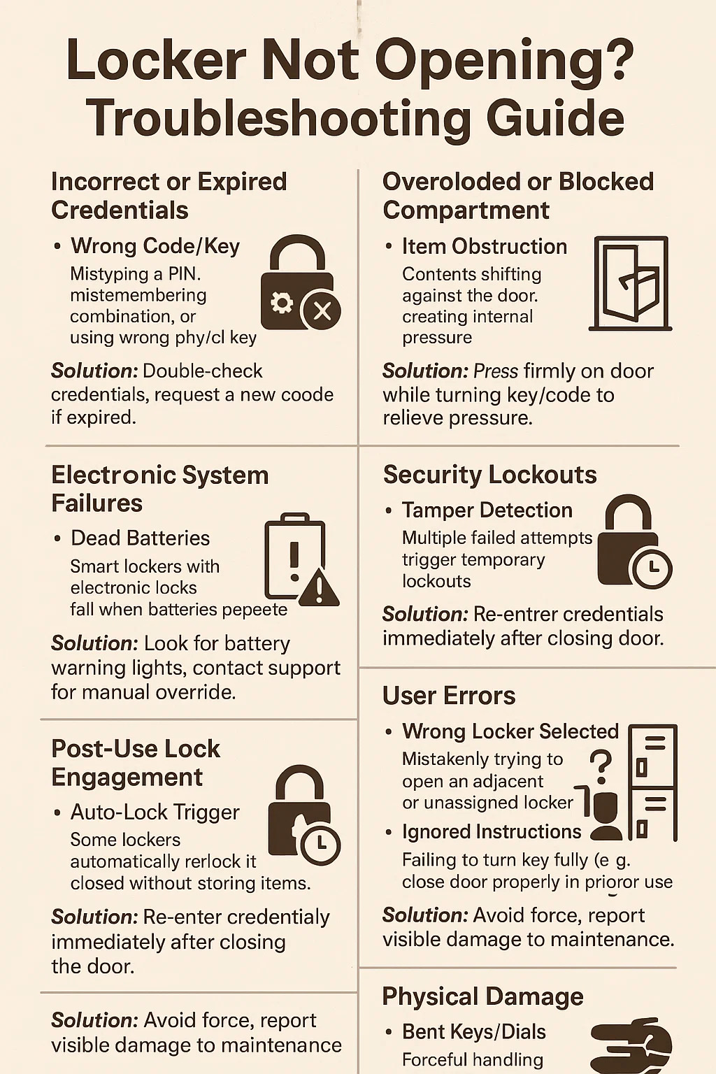 Hier ist eine Aufschlüsselung der häufigsten Gründe, warum a Schließfach möglicherweise nicht geöffnet, zusammen mit praktischen Schritten zur Fehlerbehebung: